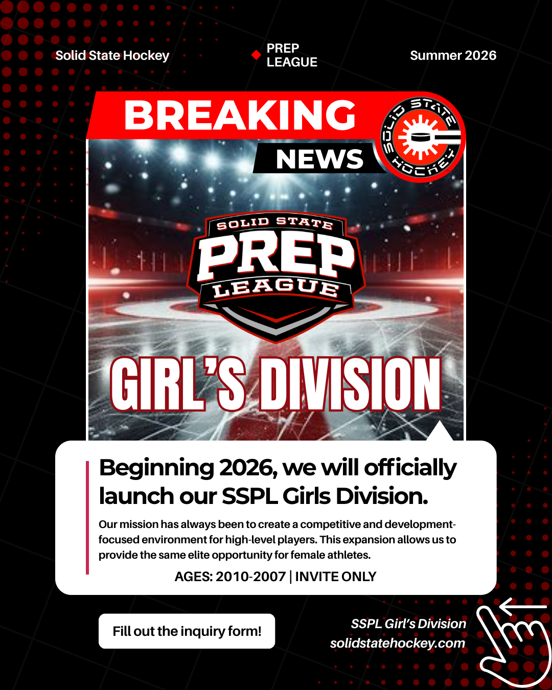The Solid State Prep League was founded in 2025 due to the lack of Development First summer hockey leagues for high and prep school players based in central Massachusetts. Up until this point, only casual summer leagues or weekend tournaments existed. The SSPL aims to fill a hole in development for players looking to advanced their skills during the summer off season.